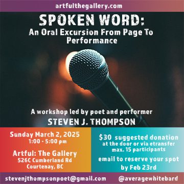 Artful the Gallery 526 Cumberland Rd, Courtenay, BCA workshop led by poet and performer Steven J. Thompson. Email to reserve your spot: stevenjthompsonpoet@gmail.com Steven J. Thompson is a writer, spoken word artist and poet. He has written […]
