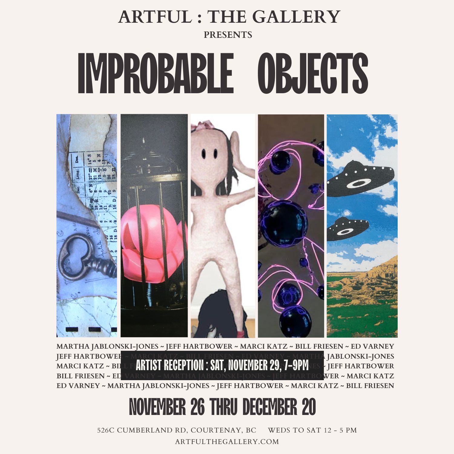 Artful the Gallery 526 Cumberland Rd, Courtenay, BCFive pillars of the Comox Valley Art scene are collaborating to bring their varied artistic endeavours to Artful : The Gallery with the exhibition “Improbable Objects”. Collaborating for inspiration has […]
