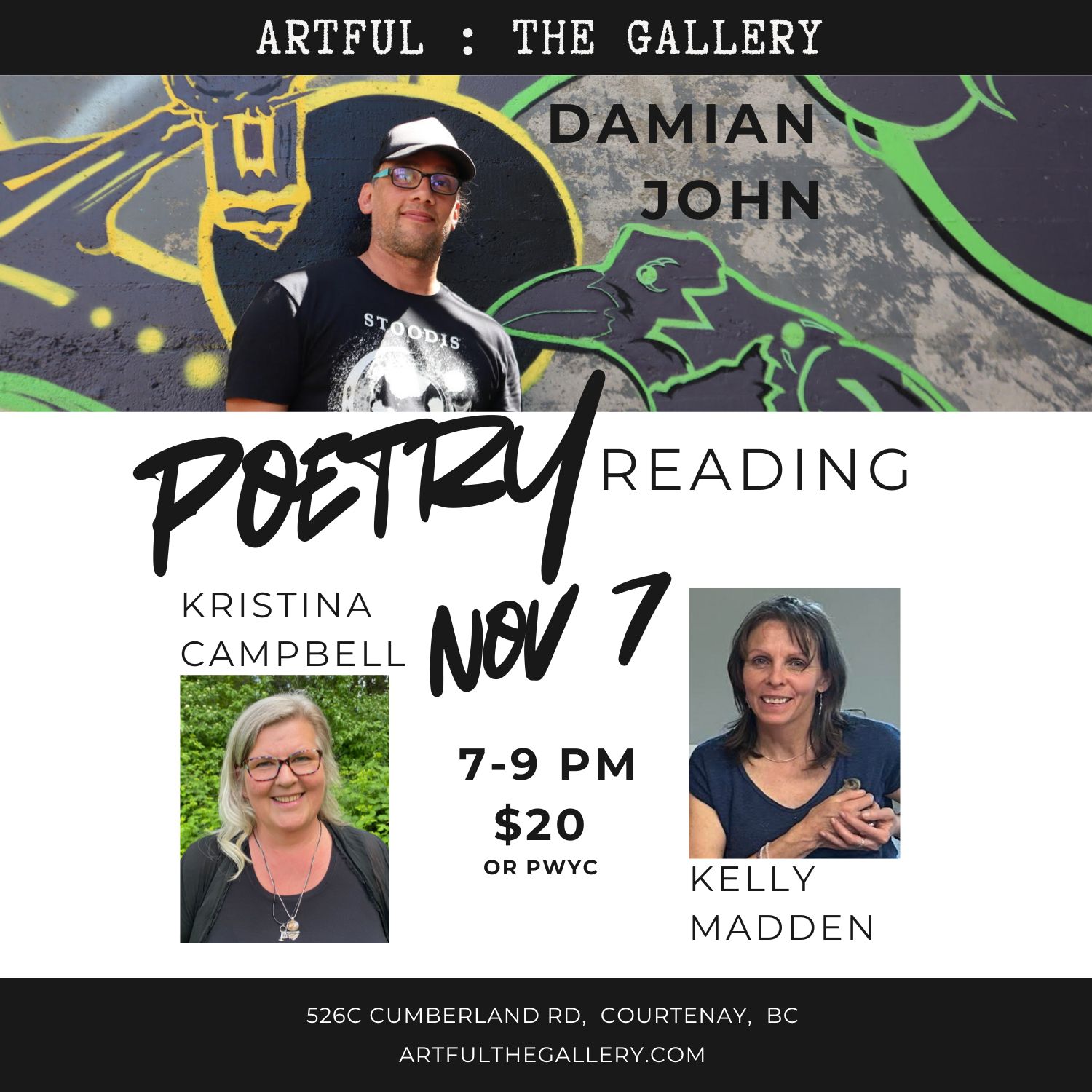 Artful : The Gallery welcomes Damian John for an evening of poetry. Poets Kelly Madden and Kristina Campbell will start the evening off, and Damian John will be the featured […]