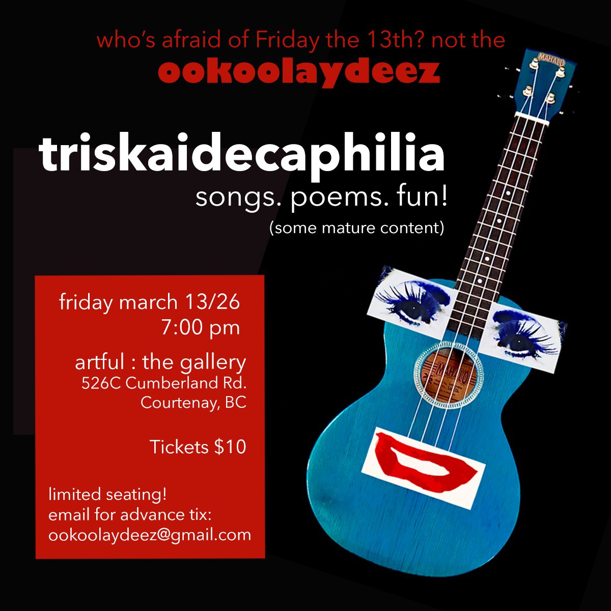 Who’s afraid of Friday the 13th? Not the ookoolaydeez! triskaidecaphilia Songs. Poems. Fun! Dynamic musical duo the ookoolaydeez bring their irresistibly singable tunes, playful wit and exuberant whimsy to Courtenay’s […]