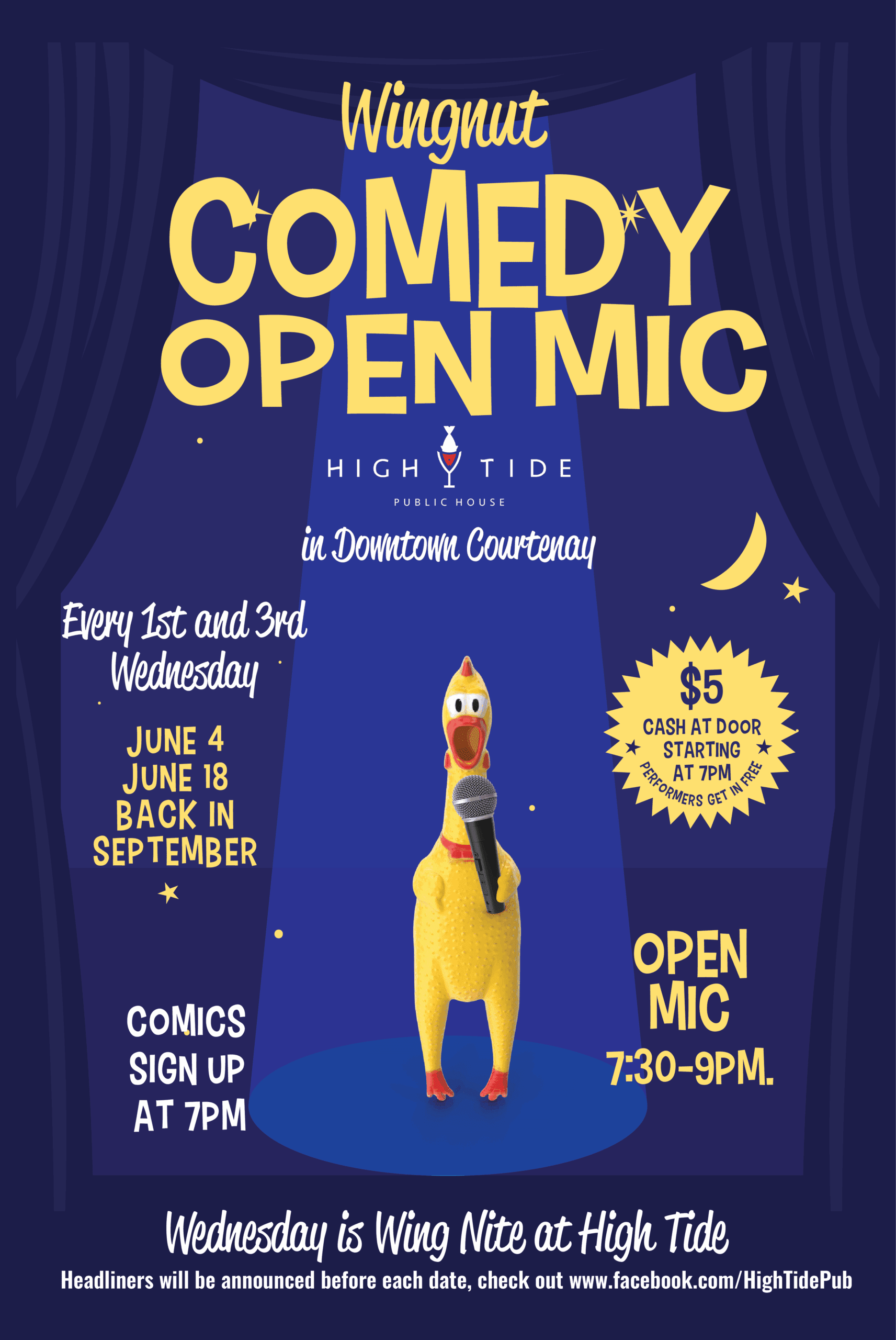 HighTidePub 268 Fifth Street, Courtenay, BC, CanadaWINGNUT open mic comedy night for local and visiting comedians. Want to try doing standup comedy for the first time? Want to practice your jokes/sets? Check this open mic out! […]